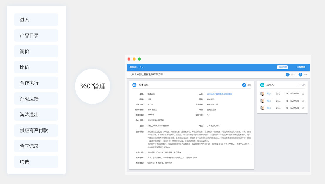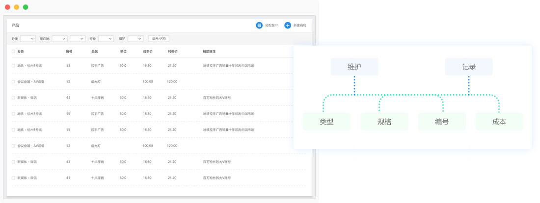 "隨時(shí)維護(hù)和記錄產(chǎn)品的類(lèi)型、規(guī)格、編號(hào)、成本等信息。每個(gè)產(chǎn)品都可以追蹤到過(guò)往的采購(gòu)次數(shù)、報(bào)價(jià)、采購(gòu)價(jià)以及相關(guān)聯(lián)的訂單和合同??勺远x查詢條件查找相關(guān)的產(chǎn)品信息”