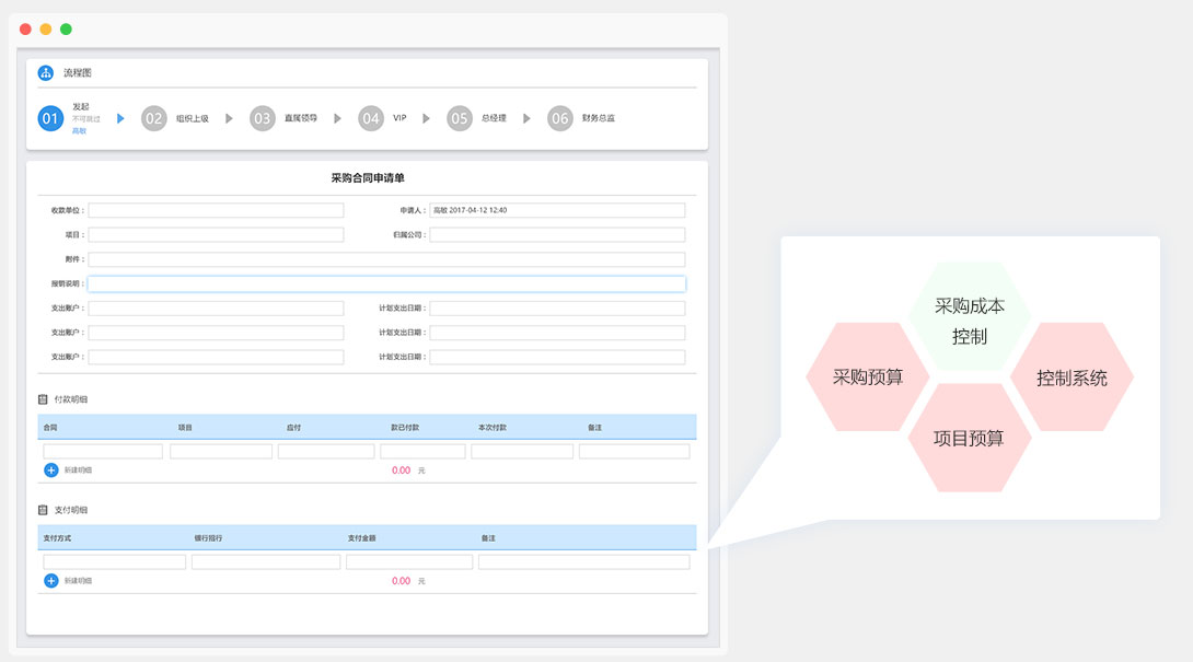 對(duì)于業(yè)務(wù)和采購(gòu)強(qiáng)關(guān)聯(lián)的企業(yè),系統(tǒng)支持從業(yè)務(wù)合同中自動(dòng)生成采購(gòu)需求,讓每一次采購(gòu)都有據(jù)可依;同時(shí)采購(gòu)預(yù)算可與項(xiàng)目預(yù)算及控制系統(tǒng)關(guān)聯(lián),有效控制采購(gòu)成本;每筆采購(gòu)可設(shè)置相對(duì)應(yīng)的審批流程。