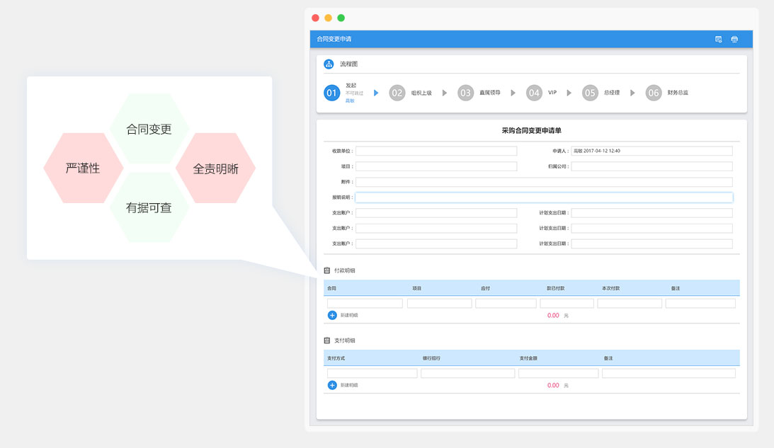 執(zhí)行采購框架合同、分期執(zhí)行合同;一個采購合同可以追加多個采購訂單,每個采購訂單都可以創(chuàng)建其付款計劃;采購合同和其所有的追加采購訂單形成完整的采購合同;支持采購和采購訂單的變更申請。